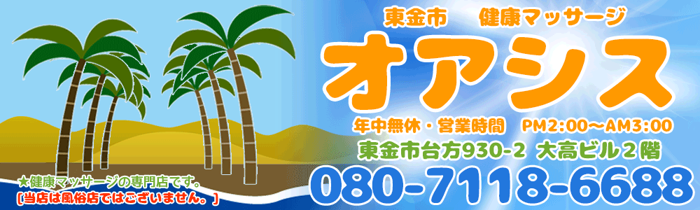東金市台方 健康マッサージ オアシス | 営業時間 : PM2:00~AM3:00